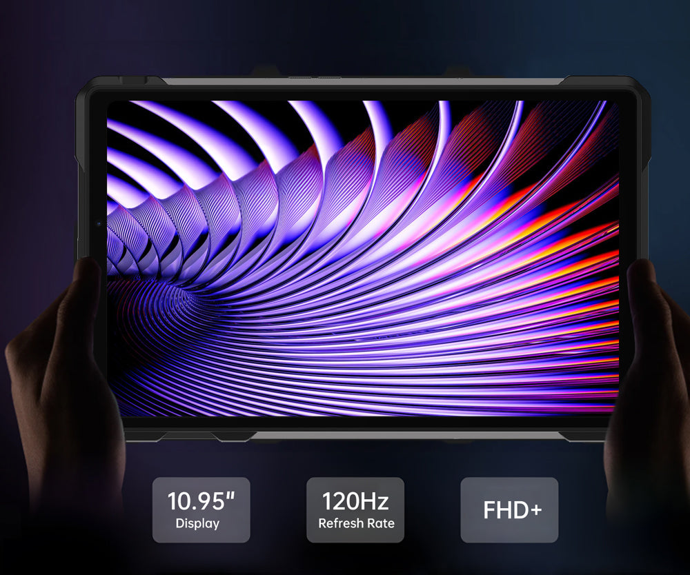 8849 Tank Pad Android 14 tablet boasts a 10.95-inch FHD+ display with a 1200×1920 resolution and 120Hz refresh rate. What's more, this 8849 tablet features a 700-nit brightness level, ensuring exceptional visibility even in direct sunlight—making it perfect for outdoor use. Whether you're reviewing documents or watching videos, its 85% screen-to-body ratio enhances your viewing experience by minimizing bezels and maximizing the screen space.