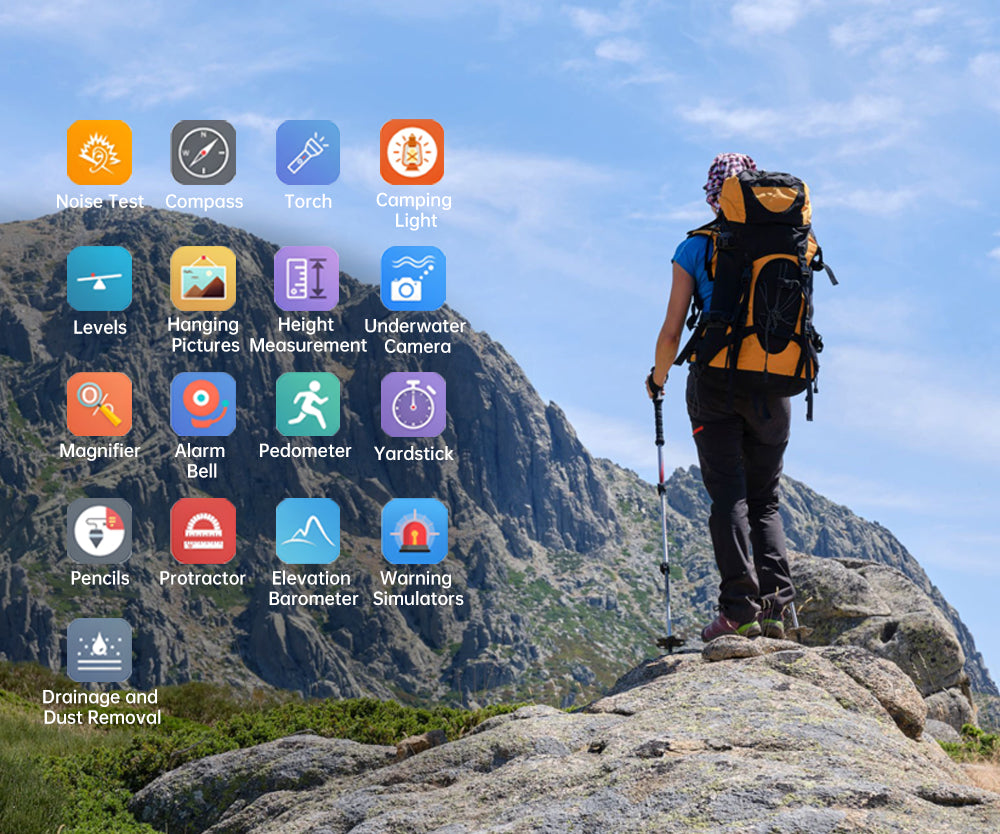 8849 phone/tablet’s water resistance is tested in freshwater. Saltwater, seawater, and common chlorinated water (e.g., diluted disinfectants, pool water, bleaching powder solution, chlorine dioxide solution, chloramine solution) are corrosive. Contact may corrode metal parts, cause button malfunctions, or damage circuit boards. The device’s water resistance does not protect against such corrosive liquids.If the phone/tablet gets into such liquids, immediately take it out, turn it off, rinse with freshwater, wipe dry, and air-dry (do not power on or use high heat to dry).