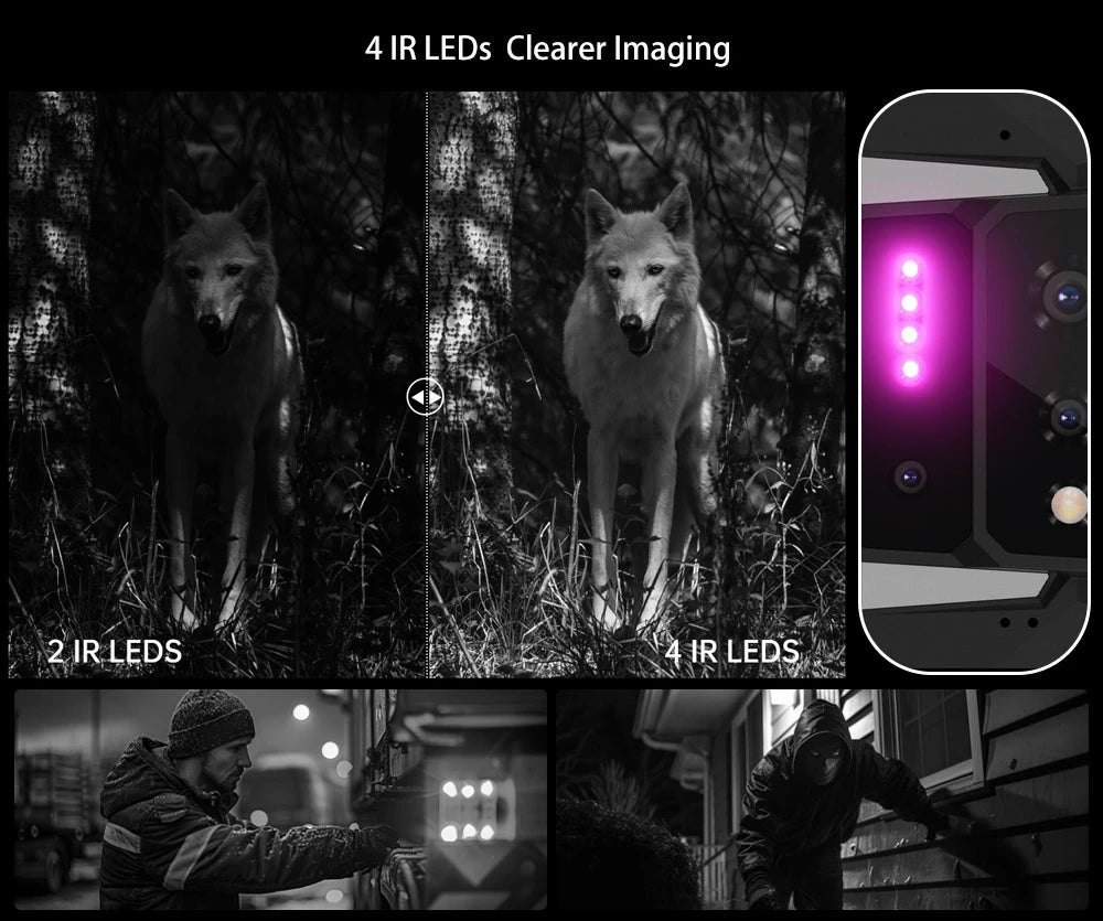 Featuring a 1.5A dual-tone rear Flash LED and four infrared illumination LEDs, this rugged phone supports infrared-assisted visual screening in dark environments. It can help reveal unusual reflections or infrared light points that may indicate the presence of night-vision cameras, while also improving low-light visibility for monitoring, outdoor observation, fieldwork, and finding pets at night.
