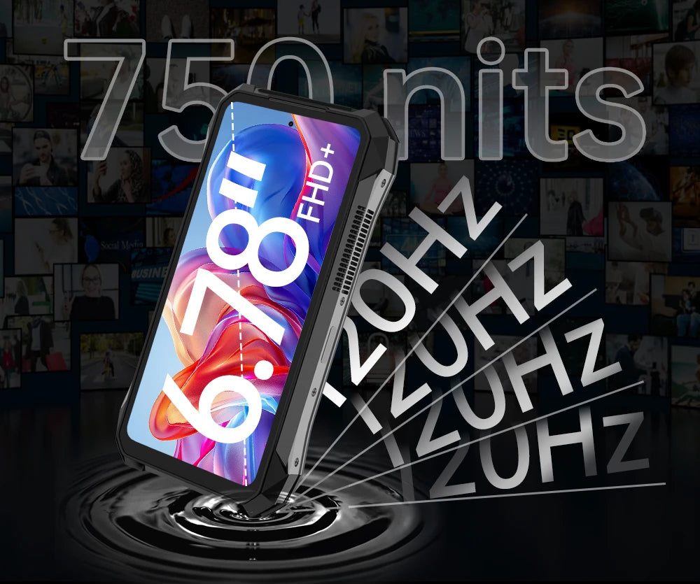 The 8849 Tank X features a 6.78″ FHD+ LCD display that delivers sharp visuals with natural color reproduction and a wide viewing area, perfect for work, navigation, and entertainment. With up to 750 nits peak brightness, the screen stays clearly visible even outdoors or under strong lighting. The PWM-free LCD panel is more eye-friendly than OLED, reducing eye strain during long viewing sessions—ideal for outdoor and industrial use. A 120Hz refresh rate, combined with a stable, power-efficient display solution, ensures smooth and reliable performance even in demanding conditions.