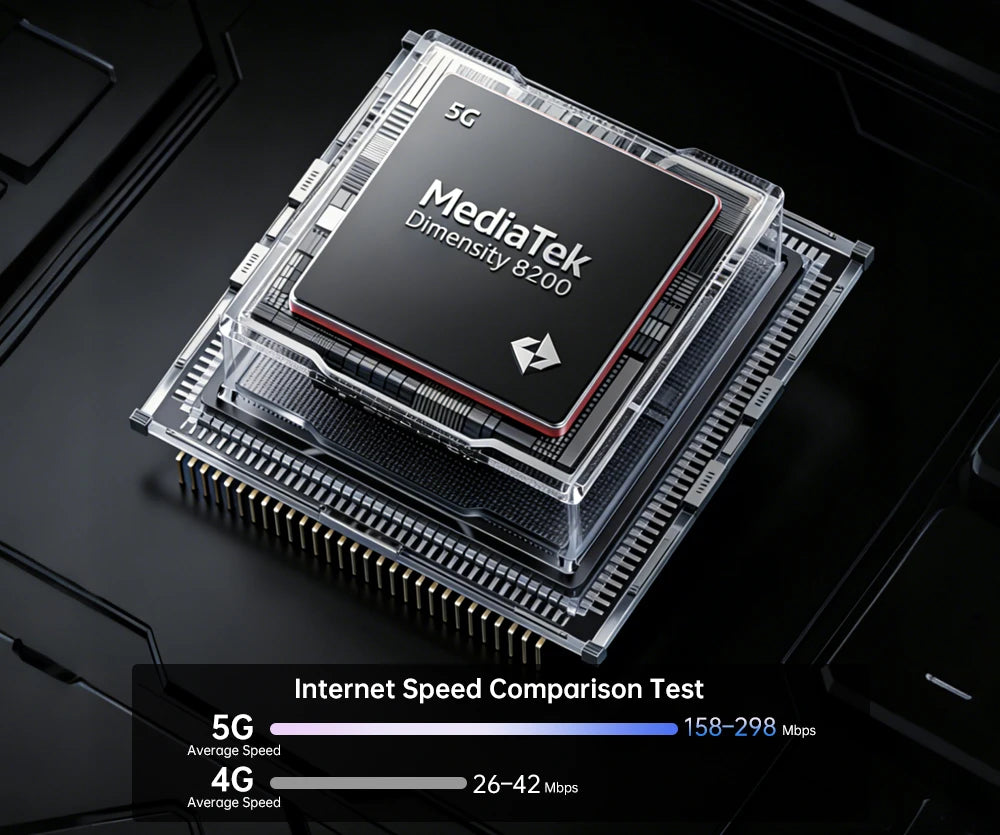 Powered by a 4nm MediaTek Dimensity 8200 high-end 5G chipset with up to 3.1GHz Cortex-A78 cores and Mali-G610 GPU, it handles heavy multitasking and HD video projection smoothly. The device also features a Sony large-sensor multi-camera system, a 6.78″ 120Hz high-brightness display, dual-frequency GPS (L1 + L5), Wi-Fi 6, and multi-mode camping and emergency lights.