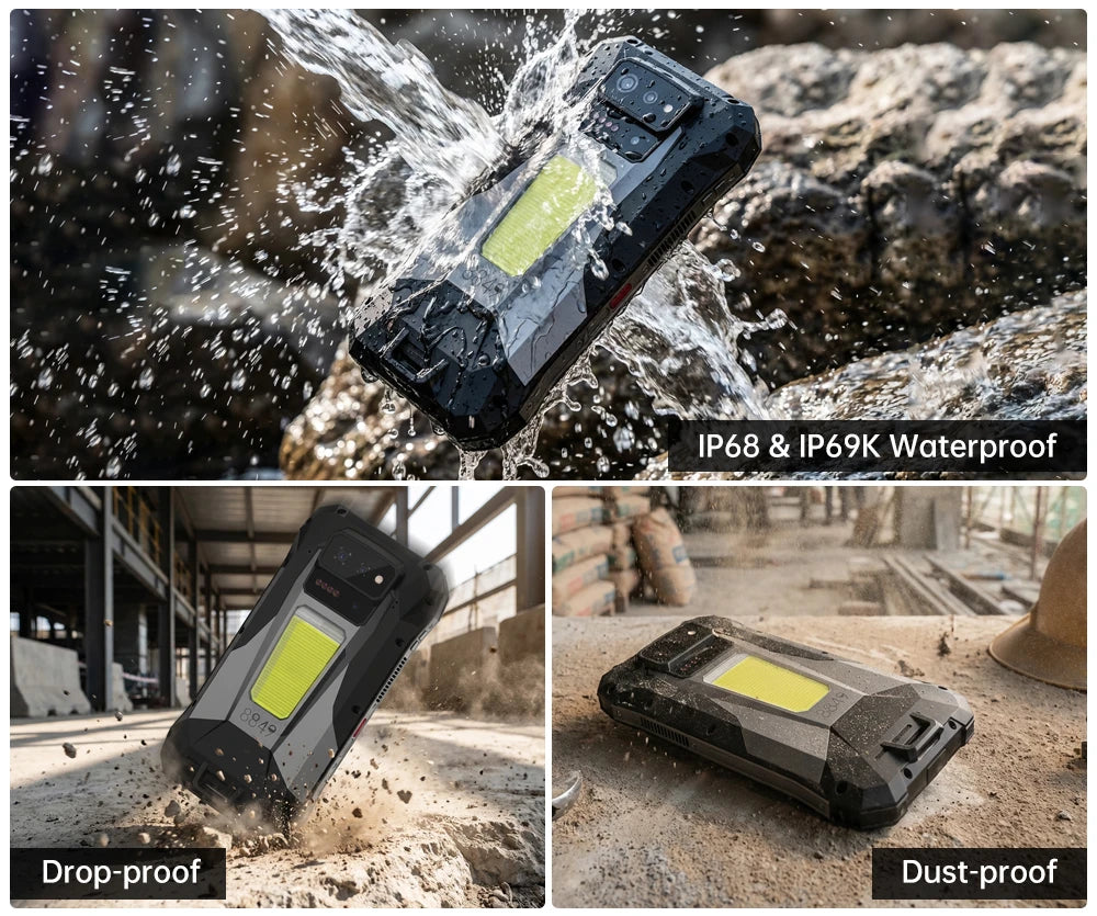 Powered by a 17,600mAh high-capacity battery—up to 3 times of typical 4,000–6,000mAh smartphones—this rugged phone delivers long-lasting performance while remaining airline carry-on compliant. It operates reliably in extreme temperatures from –28°C to 56°C (–18°F to 133°F) and supports 120W fast charging, reaching a full charge in just 70 minutes, with reverse charging for powering other devices. Enjoy up to 65 hours of talk time and up to 6 hours of projector use (Night Mode), making it ideal for business professionals, long-haul drivers, outdoor adventurers, and power users who rely on their phone all day—and beyond.