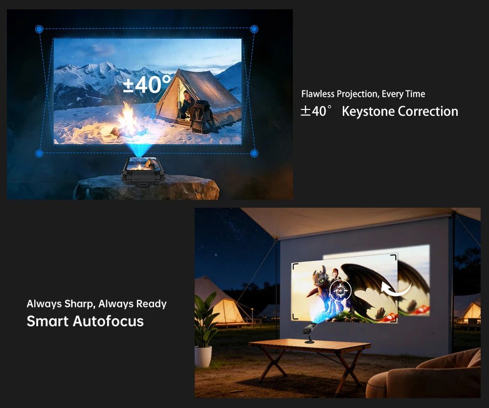 This built-in projector features laser-based automatic focusing from 0.5 m to 3.0 m, so it quickly and accurately sharpens the image without you having to manually adjust focus. The wide ±40° keystone correction lets you align the projection to a flat surface even when the phone isn’t perfectly straight, keeping images rectangular and distortion-free in uneven setups. Together, these features make it easier to get a sharp, properly aligned projection in camping tents, meeting rooms, outdoor walls, or field environments, saving time and effort.