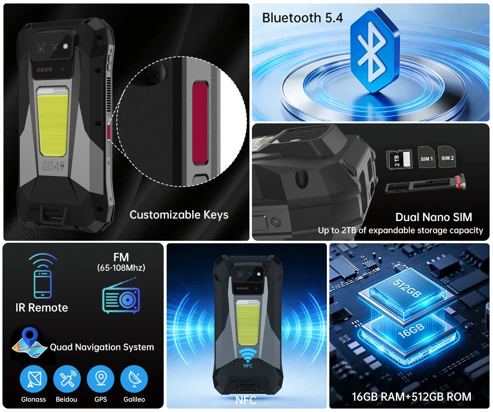Built to withstand rain, dust, sand, vibration, shocks, rapid acceleration, extreme temperatures, humidity, high altitude, and even temporary immersion, 8849 TANK X rugged smartphone delivers reliable performance in any environment. Perfect for outdoor adventurers, industrial and field workers, emergency responders, and tech enthusiasts who need durable, high-performance devices wherever they go.