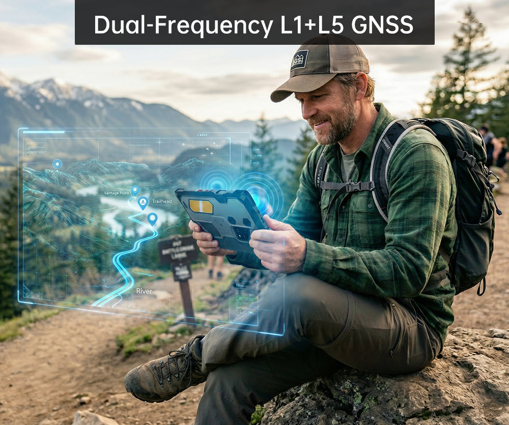 • GNSS Dual-Frecvență L1+L5 — Navigație fiabilă în munți, păduri sau zone urbane.