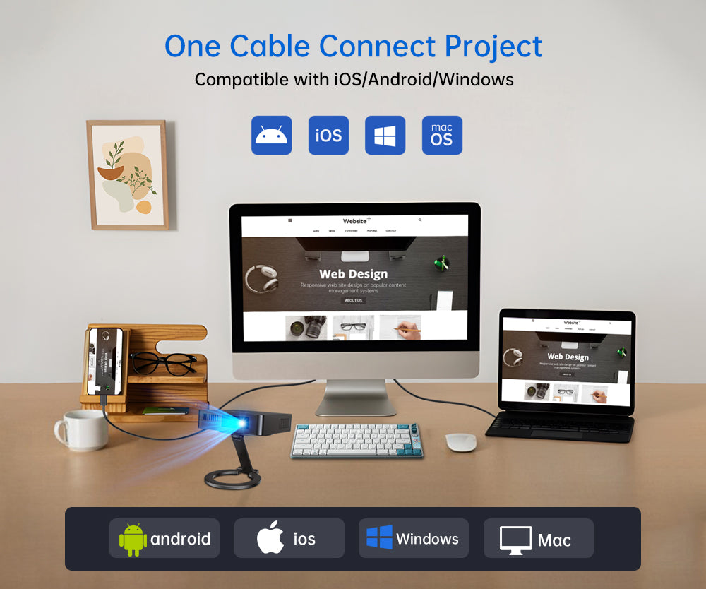 Effortlessly connect this projector to iOS, Android, Windows, and Mac devices with just one cable. Simplify your projection setup!