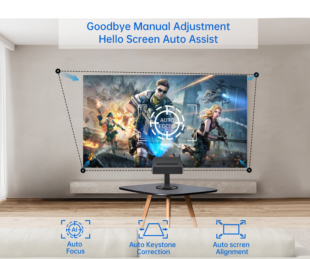 No more manual fiddling. Auto focus & screen align for easy viewing.