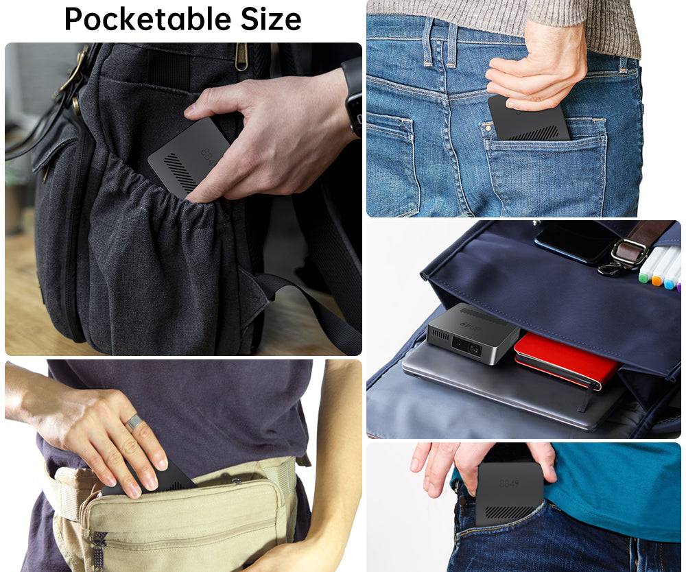 This projector boasts a pocket - sized design, easily storable in pockets, bags or pouches. Ideal for on - the - go use.