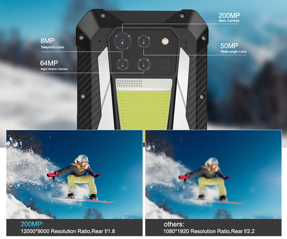 200MP Main + 50MP Wide - angle + 64MP Night Vision + 8MP Telephoto, for Stunning Shots Anytime.